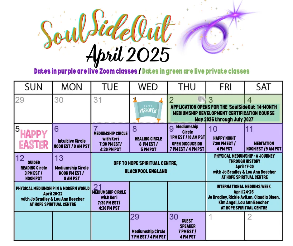 Lou Ann is a tutor for the International Spiritualist Federation and the annual International Mediums Week. She is the founder of the SoulSideOut Mediumship Membership Community—a supportive space where developing mediums can unfold their abilities, share experiences, and find encouragement along the way.